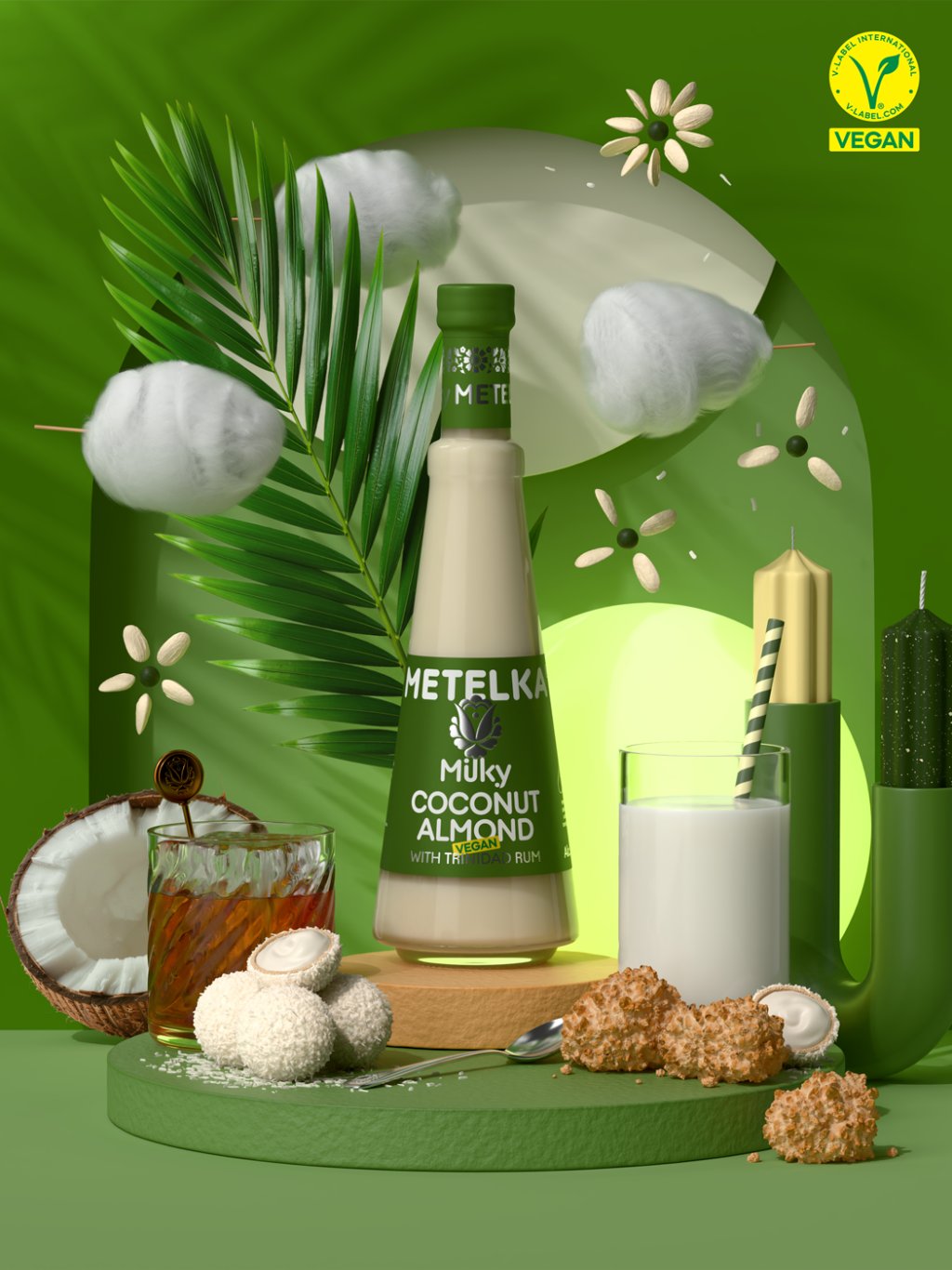 MILKY KOKOSOVÁ MANDLE Alk. 14% obj., 0,5 l Ostatní alkoholický nápoj s příchutí kokosu a mandle.